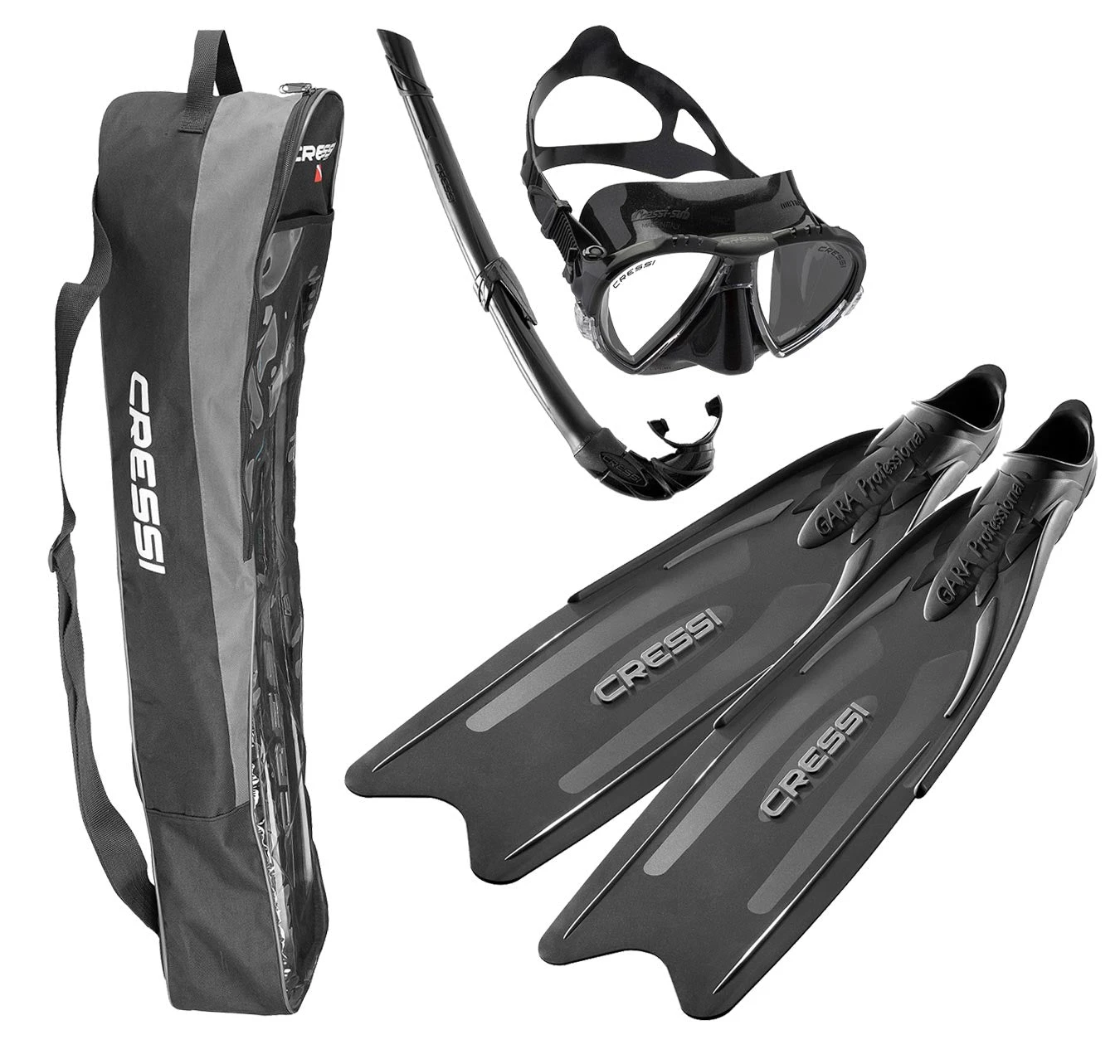The Cressi Gara Professional LD Set is one for those seeking higher than entry-level quality gear for either free diving or spearfishing. The set is suited for use in both shallow water and open water as the fins are longer than most and made to require minimal effort for maximum propulsion.