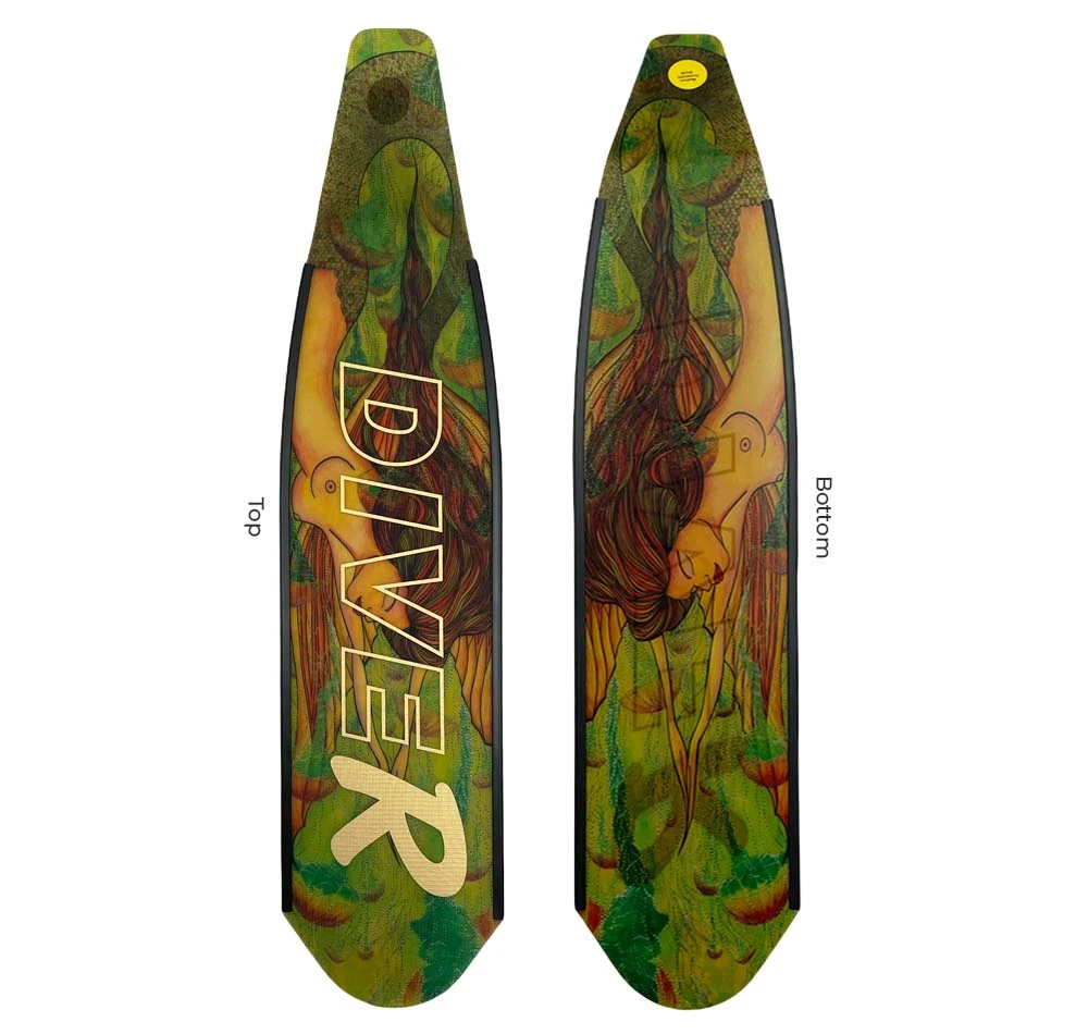 The DiveR Composite Green Mermaid Fin Blades are a high thrust, durable and relatively lightweight blade designed for spearos and freedivers looking for awesome quality and a unique style. All DiveR Blades come without foot pockets.