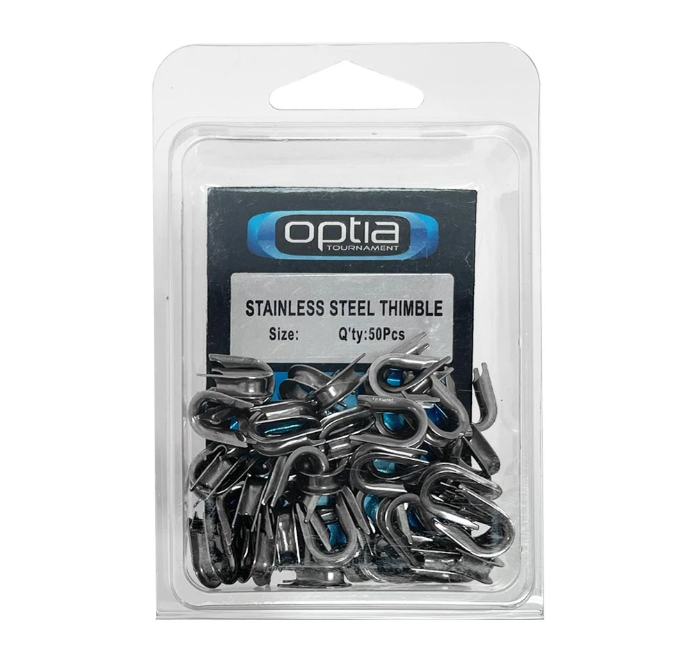 Thimbles protect your monofilament line from abrasion while allowing hooks and swivels to move freely. The Optia Stainless Steel Thimbles are available in both small and medium sizes.