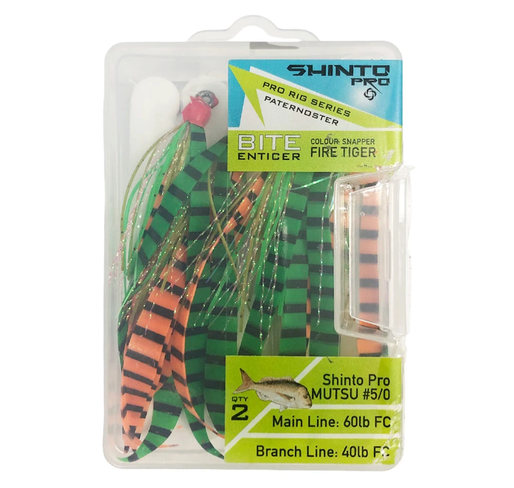 - The Shinto Pro Bite Enticer Paternoster Mutsu Circle Rig 2pk Size 5/0 is most effective for targeting Snapper but can be used to catch a variety of other species.