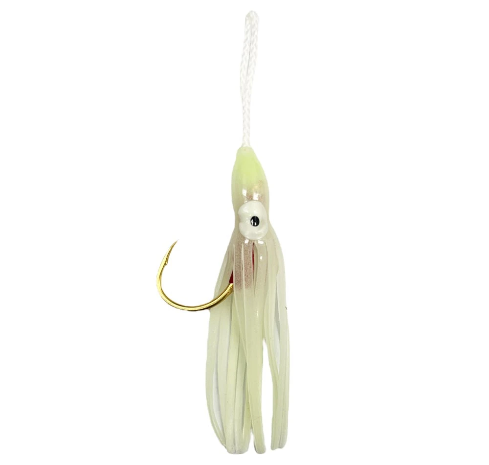 The Shout Rockfish Glow Assist Hook is a pre-rigged slow pitch jigging assist hook with occy skirt, ready to go! A soft lumo bead is contained perfectly under the occy skirt to minimise tearing and the skirt sliding down over the hook. Spliced white Shout PE Cord completes the rigging and this skirt is ready to attach straight to your jig or to a solid ring, either top or bottom as required. The occy skirt provides extra flash and attraction to your jig and can be the difference on slow days offshore jigging. This hook is also a great hook replacement for inchiku style jigs.